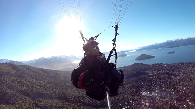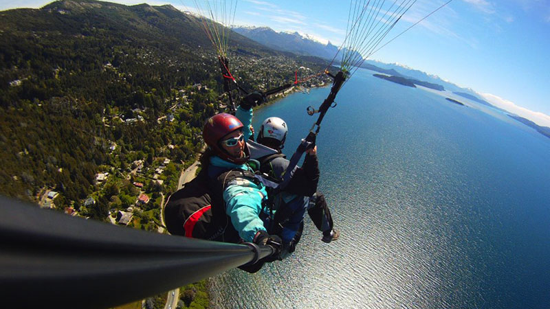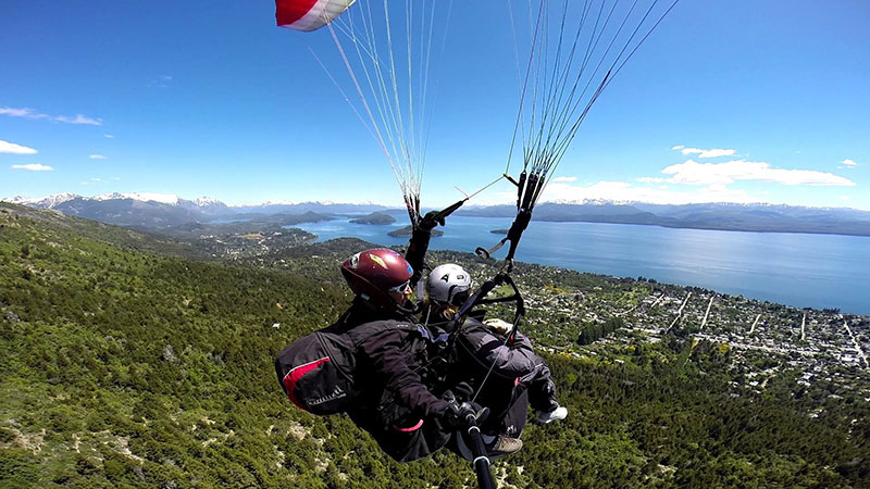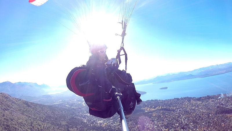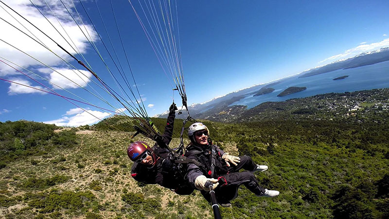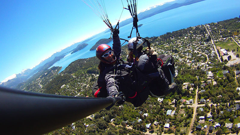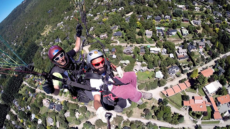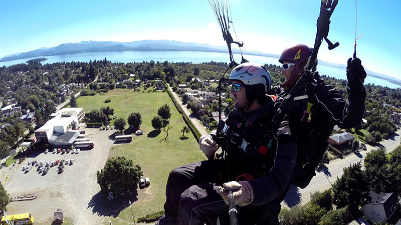 Hace 22 años que vuelo en parapente y 20 que empece con la actividad modo biplaza, llevando turistas a volar sobre San Carlos de Bariloche.