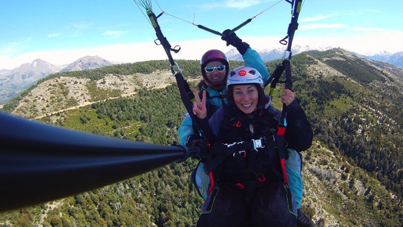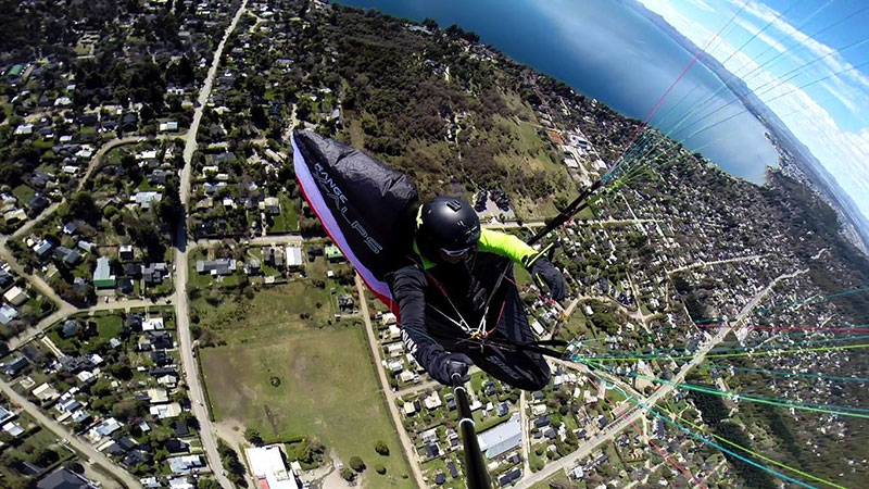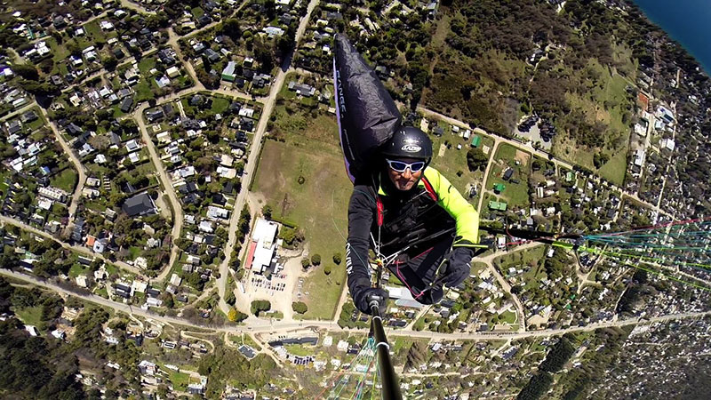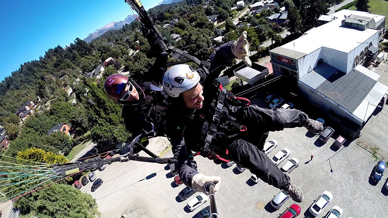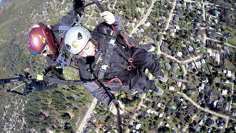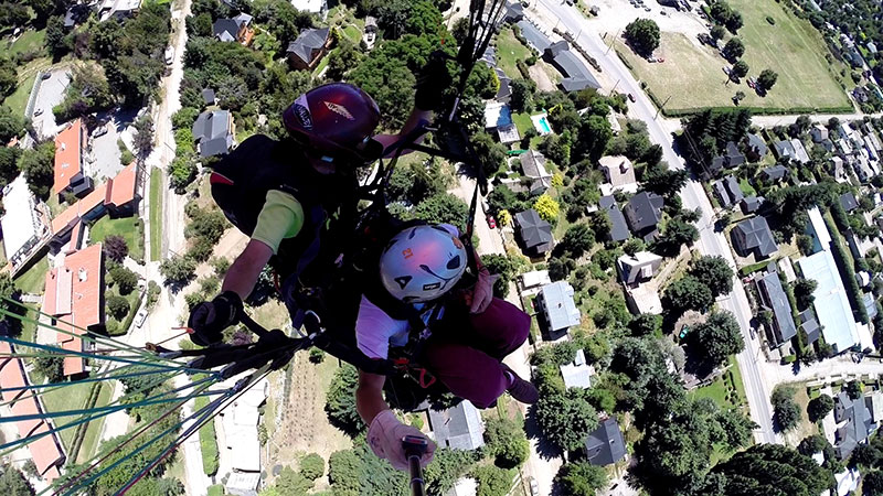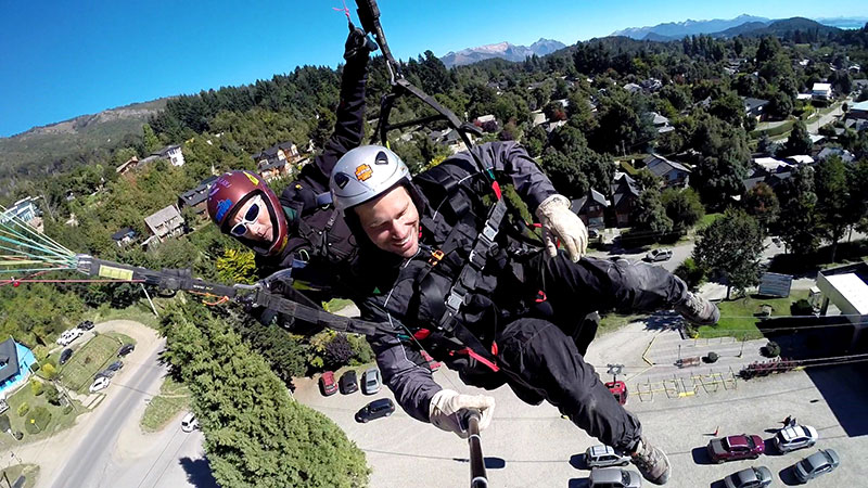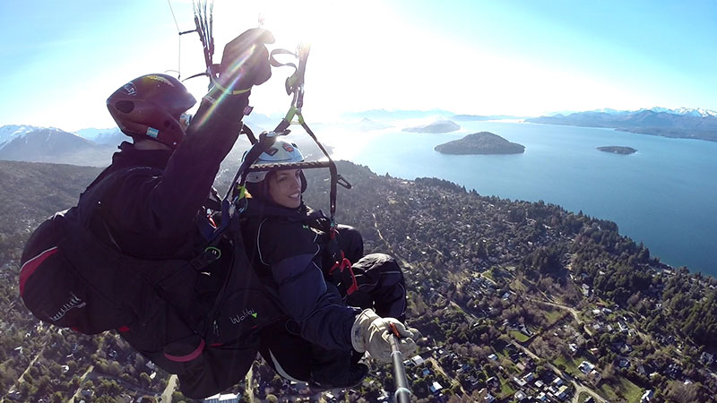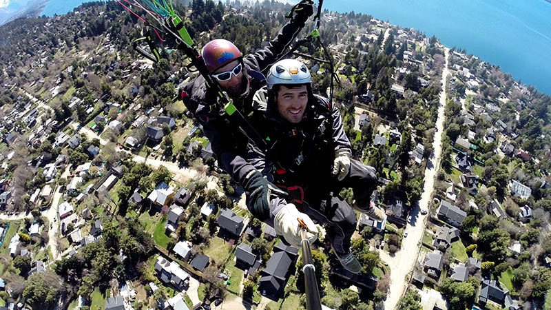 Hace 22 años que vuelo en parapente y 20 que empece con la actividad modo biplaza, llevando turistas a volar sobre San Carlos de Bariloche.